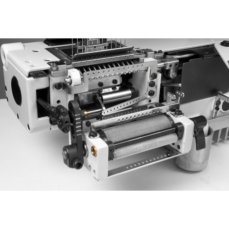 Nowa wersja maszyny łańcuszkowej 12-igłowej, 36-nitkowej, przystosowanej do szycia gumonićmi wplatanymi w ścieg. Maszyna posiada udoskonalony system podawania gumek w strefę szycia, gdzie gumki, zamiast przechodzić przez chwytacze, są wprowadzane bezpośrednio w ścieg. Takie rozwiązanie znacząco niweluje problem nierównomierności gumek i zjawisko przepuszczania ściegów.
