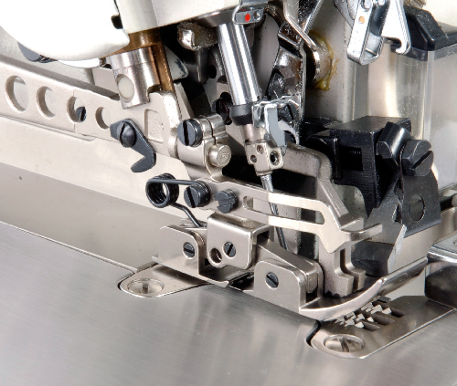Overlock 5-nitkowy z podwójnym transportem (górny + dolny), przeznaczony do szycia materiałów ciężkich tj. materiały tapicerskie, jeans, odzież robocza itp. Zastosowanie górnego transportu gwarantuje równomierne prowadzenie nawet wielu warstw materiałów oraz ułatwia przeszywanie na zgrubieniach i szwach poprzecznych.